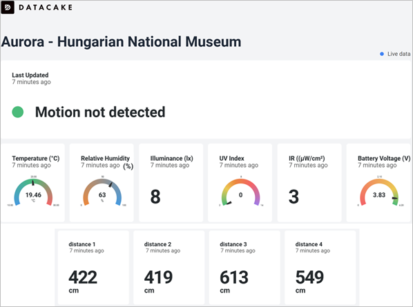 Real‑world deployments in museums in Ireland and Hungary validated the robustness of the system in operational environments. A dedicated dashboard enables staff to visualise live and historical telemetry, while automated alerts notify users when movement or environmental anomalies are detected.